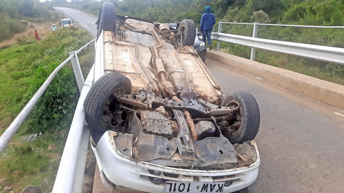 An overturned vehicle on Naivasha-Kinangop road. FILE PHOTO | NMG