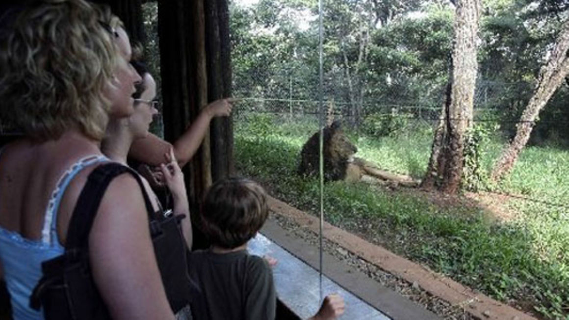 Tourists look at a lion at the Nairobi park. Tourism has taken the biggest hit following the closure of borders in an attempt to contain the spread of the virus. FILE PHOTO | NMG