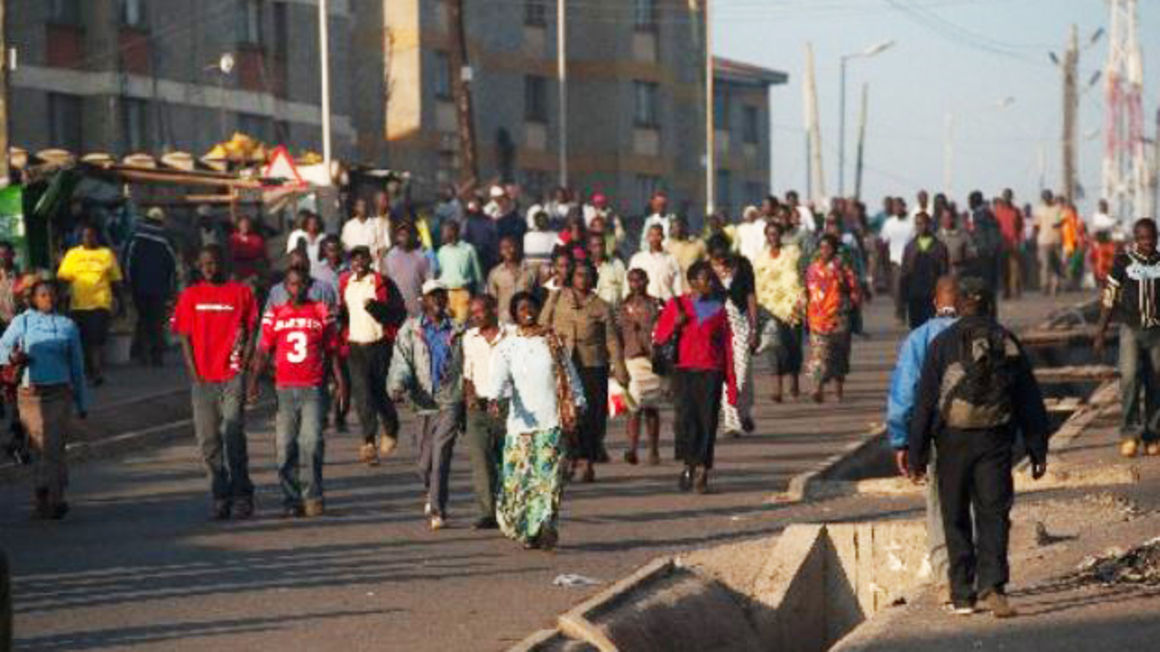 People walk from Kibera slums to Industrial Area in Nairobi in search of work. FILE PHOTO | AFP