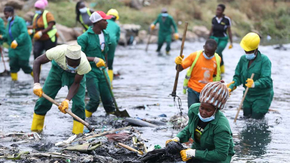 County workers clean the polluted Nairobi River on February 22. PHOTO | GPS