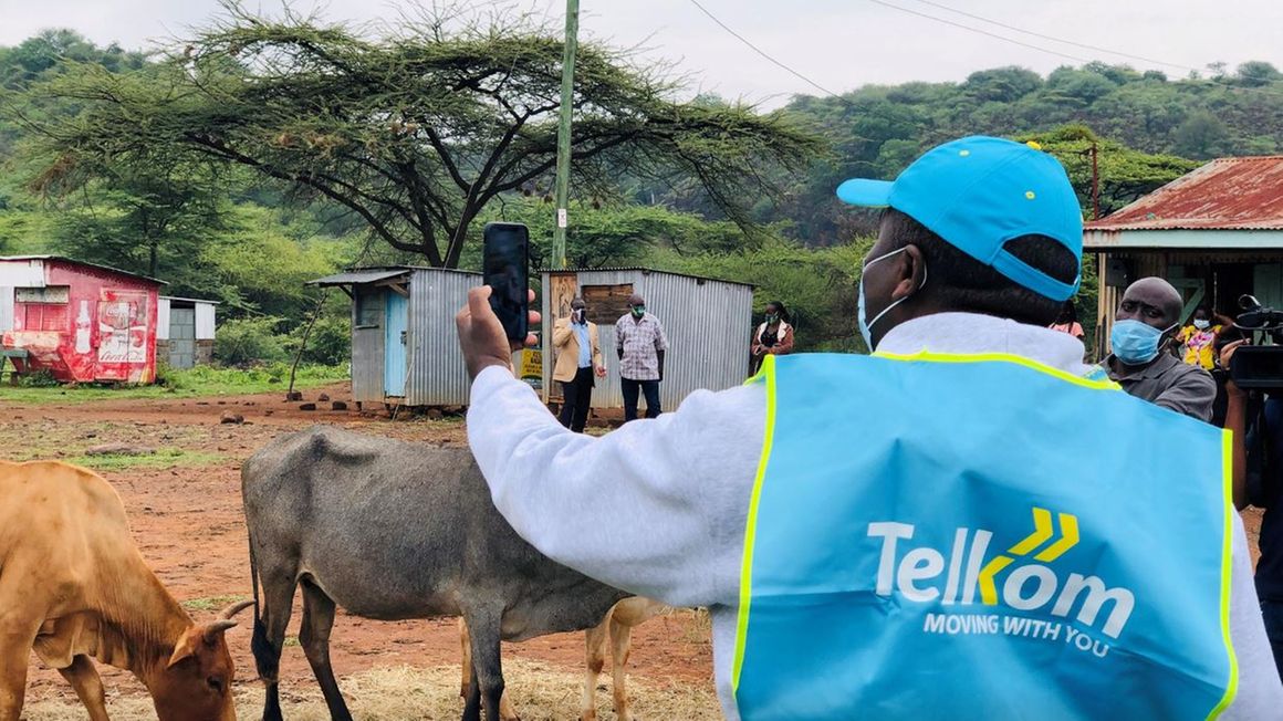 Telkom Kenya CEO Mugo Kibati uses his smartphone to test the Loon technology internet via video call in Radad, Baringo County on July 8, 2020. PHOTO | REUTERS