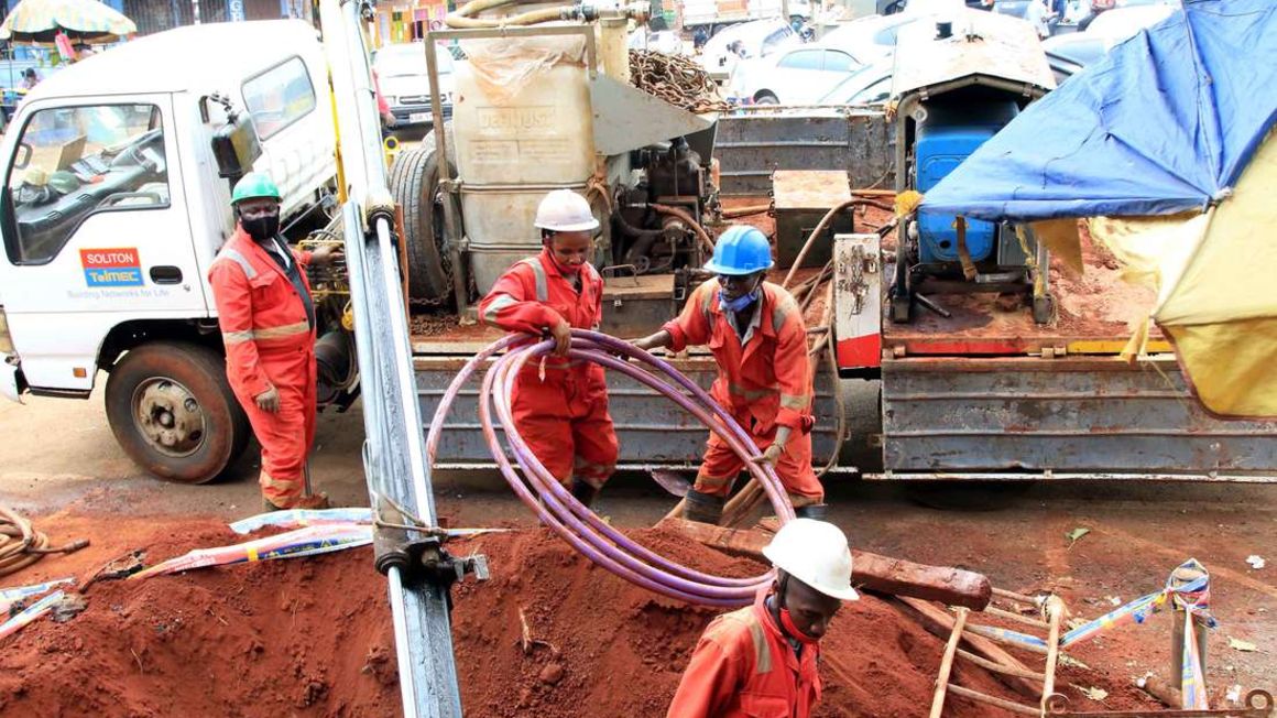 Workers lay fibre-optic cable in Nyeri town on August 18, 2020. FILE PHOTO | NMG