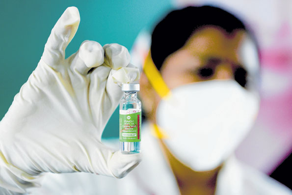 A medical worker displays a Covid-19 coronavirus vaccine vial at the government Rajaji hospital in Madurai on January 16, 2021. (Photo by Arun SANKAR / AFP)