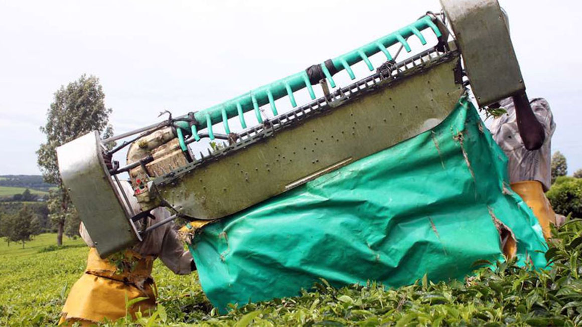Workers harvest tea using a plucking machine in Kericho. PHOTO | TONNY OMONDI