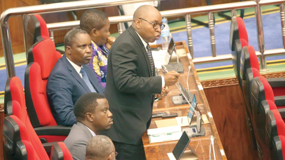 The minister for Natural Resources and Tourism, Dr Damas Ndumaro, speaks in Parliament in Dodoma yesterday. PHOTO | JONATHAN MUSSA