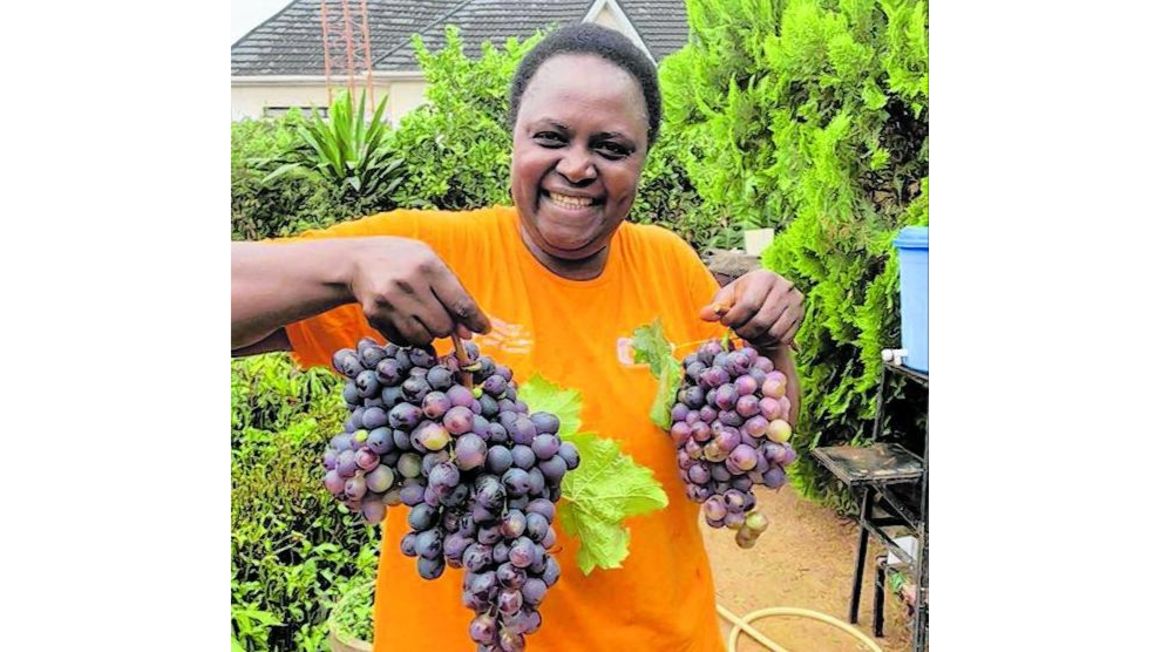 Kyenpiya Deshi holds bunches of grapes from her back garden. PHOTO | DORCAS BELLO