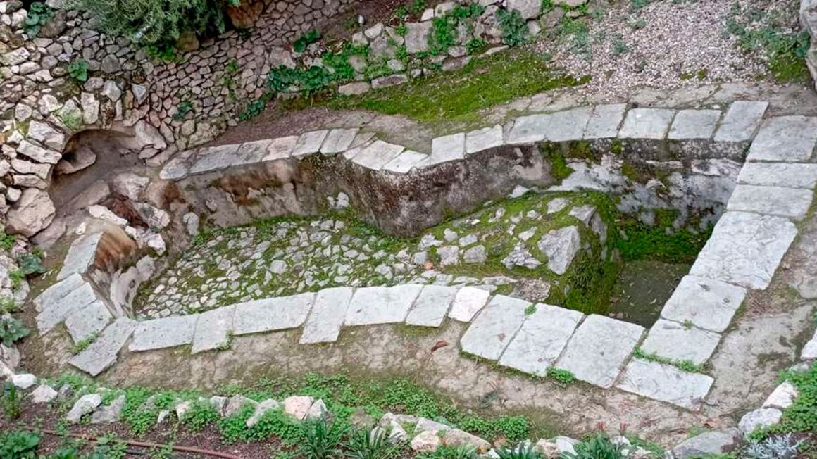 Unearthed in 1867, it is cut out from a rock that forms the wall of the garden. To my left were pots carrying herbaceous shrubs like lavender and to my right, a sitting area.
