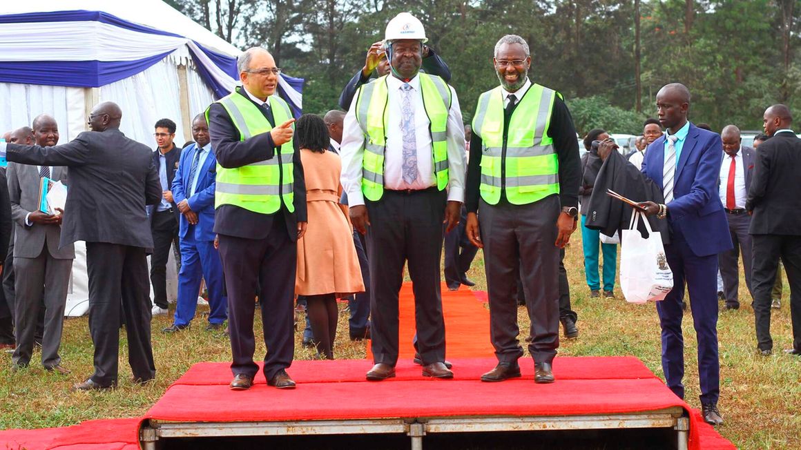 From Left: Elgon Kenya Managing Director Bimal Kantaria, Prime Cabinet Secretary Musalia Mudavadi and Nairobi University Vice-Chancellor Stephen Kiama during the groundbreaking ceremony for Kantaria Agricultural Technology and Innovation Centre (KATIC) at the University of Nairobi, Upper Kabete campus on July 25, 2023. PHOTO | KENNEDY AMUNGO | NMG